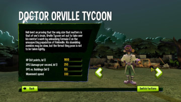 来历:泰昆博士继承了他的导师的Z方程式计划,对Finkleville当地的居民进行实验,虽然他所创造的僵尸可能有些潦倒,但是它们都会相当忠心,都会完成泰昆的每一个目标。