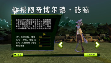 来历:疯狂的天才中最为疯狂的一人,脑胀教授被自己的学徒奥威尔盗取了制作成果,而且不仅遭到了背叛还被奥威尔害死,但他回来了,而且还研究出更为之疯狂的僵尸。