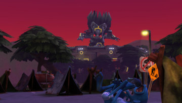 step12.抱抱熊会不受控制地从到左侧一群幸存者正在狂欢的山谷内,将那儿的猎人跟幸存者都杀光。