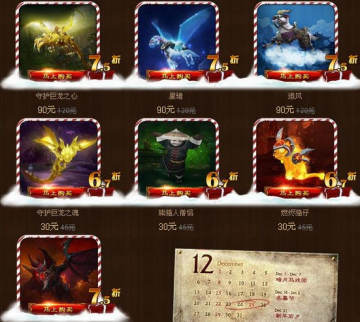 活动期间(2013年12月12日-2014年1月2日),以下7大热销坐骑和宠物,限时折扣贩卖,过期不候。