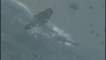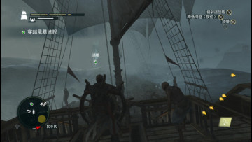 不必理会两侧、后方的追兵,朝着南面冲入风暴中,过程中会遇到两次疯狗浪,只需要按X键让船员一同蹲下躲避,即可减少船只受损程度以及减少人员流失。