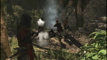 刚走出洞口,就看见之前熄灭的火篝前蹲守着三名法国士兵,掏出散弹枪,向他们射击,即可以一下子击毙三人。