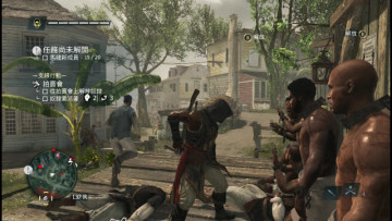 step5.去到太子港的一嗰官邸的北面,有一个贩卖奴隶的台子,先混入台前的围观人群中,往台附近的几名暴徒士兵喷去狂暴吹箭,让他们自伤残杀。