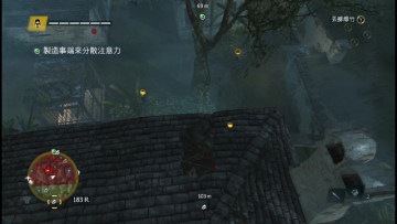 step9.继续往西面的港口走去,到达中部的一嗰小院子前,会发现这儿有很多的敌人把守,往地上丢去一嗰爆竹就可以吸引大概4到6名的敌人,然后院子北面的两棵大树的树杈可以跳到西面的房顶上。