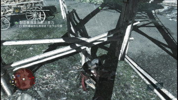 然后去到瞭望塔左侧(南)的草棚前,将两名正在对话的士兵捅死,接着抱起草棚下的炸药桶回到瞭望台下方。