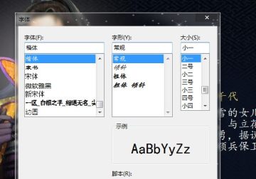 3.字体,只能选择你系统里目前已经安装的,尽量选那种字比较全的,否则你会看到各种方块字。