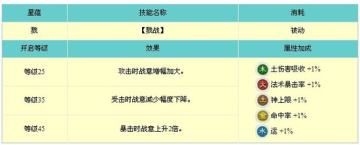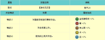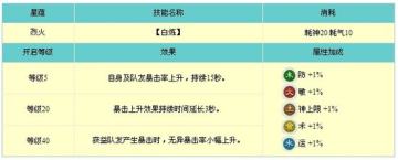 c. 三颗星:自身及队友爆击上升18秒,队友每产生一次暴击,无异暴击率上升1%