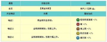 1. 从他的伤害输与其他三位角色比较,可以看出来,比其他们弱了一些,他是唯一一个不洒钱,不用终结技,就无法在45秒内击败白额虎的,好在他在游戏后期拿到比其他人还强的武器后,有弥补了这一点。星蕴点法,则是一条是以金(增强攻击)为主。