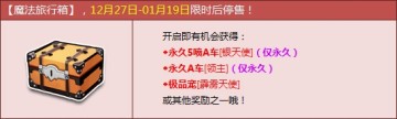 《qq飞车》最近推出了新的道具“魔法旅行箱"玩家可以在商城直接购买,但是有时间限制的哦。开启魔法旅行箱之后有机会获得永久A、极品宠、极品手杖等豪华奖励。