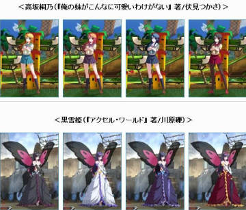 《电击文库 战斗高潮》近期公布了6名登场角色的配色方案,其中就有《刀剑神域》的亚丝娜,《我的妹妹不可能这么可爱》的高坂桐乃,《加速时间》的黑雪姬,《魔法禁书目录》的御坂美琴等人登场,除动漫原色外,其他几种配色也相当带感,一起来看看吧。
