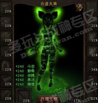 7、第二把武器格子在元神合道大成才可以开启,也就是所谓的元神满级。武器格子带来的属性提升,比其他任何格子的效果都要好,所以,元神的等级优于元神格子。先到大成才是关键,尽量先搞元神,后买技能点!