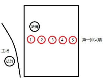 传送带要打的快,起手站位读混乱箭很重要,下面说一下我的起手站位,这个站位可以不用动,等到第一个火墙正好火柱消失,具体微调要自己掌握这里无法细说。当然你是熟手可以自己归纳一套站位,打多了,自己习惯才是最重要。