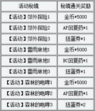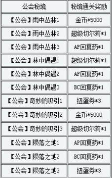 《百万亚瑟王》萌兽觉醒活动和公会秘境的通关奖励 来源: 飞翔小编 2014/1/3 15:44:07 浏览量:377 卡牌网游《百万亚瑟王》在1月1日至16日期间“萌兽觉醒”活动中,更新了活动秘境和公会秘境,这里给大家分享下《百万亚瑟王》萌兽觉醒活动和公会秘境的通关奖励。萌兽觉醒的秘境奖励一览:
