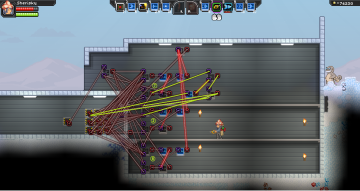 可以发现,在⑦后多了三个元件,分别是非门,与门和锁存器。我们在构成六位密码时需要五组这样的装置,这里我为了方便讲解故摆得比较散,新加的线路我用黄线勾出来了。