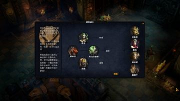 中途会遇到一次BOSS战,这里可以用盗贼的偷盗技能消除BOSS的增益BUFF,数遍一说,T的嘲讽记得随时用,敌人乱跑打法师可不好玩。随后这货逃跑,继续追杀到门前这里还是老办法干掉即可,人物到达LV4后可以开启技能树,升级技能,左下角可以无限重置点数,非常方便。