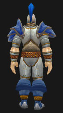 君王套装的风格和颜色用来cos卫兵非常完美,尤其是头盔,几乎完美。但是也有很多不足的地方,最明显的就是肩膀。有一个散件肩膀与暴风城卫兵穿的极为相似——矛骑兵护肩。