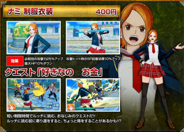 《海贼王 无尽世界R》DLC服装售价均为400日元,除服装外还同捆了一项新任务,完成后可以获得相应奖励,各位购买了本作的3DS玩家不要错过了。