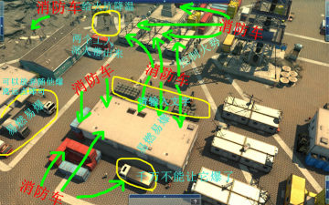 触发第二剧情后,地上有巨大熔岩坑,直接先派一辆喷水车过去给大坑降温,不降温的话别的你再扑还是会继续着火。这一剧情的重点尽可能少的避免车辆和钻井左边那一堆的桶起火爆炸,然后阻止火势向钻井蔓延,扑灭离钻井最近的火,并且还要有人给边上的降温!!而且不要把消防车和人员放置于车辆附近,尤其是有个通道(玩了你就知道在哪了),否则后果很严重啊……直接炸死一堆人,消防车也免不了~~需要注意的是,熔岩坑边上有两个伤者要用直升机就走,人过去会立即受伤,所以也不要让你的消防员靠近;另外熔岩块与散乱的集装箱之间会有两个工人被困在里面,派消防员进去带出来到安全地点。要注意给集装箱边上的白色房子降温,最好是直接来辆喷水坦克,这房子烧不起来,下面的一堆集装箱就安全多了~还有就是钻井左边有一堆油桶的那个仓库也很重要,先扑灭仓库外面放的木材堆,然后再一遍扑仓库的火,千万不能放油桶起火!!
