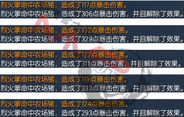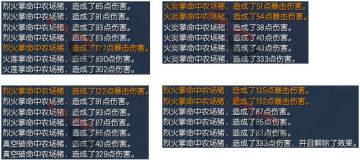 发现共同点了没有?这些爆炸暴击之前的引爆技能也是暴击的,这可不是妖妖酱特意演的图,只是因为火种爆炸是否暴击完全取决于引爆它的技能是否暴击了。上面的假暴击也是同理,前一个烈火掌如果不是暴击,爆炸伤害也不会写着暴击。