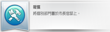 报偿需要市长官邸满级,需要保持90%满意度一定时间才能达成