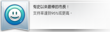 95%支持率成就难度较高,一般通过区域互动原则,新建城市完全满足其要求来达成成就
