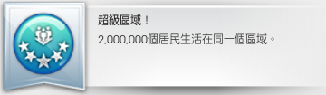 大型区域和超级区域成就2.0暂时只能由单城城市达到完成,依然推荐按照sunbeyon大人的120W人口城市模型教程去尝试,城市人口达到100万稍等几个小时即可完成