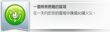 一个熊熊燃烧的区域,该成就区域统计问题推荐单人完成,可以尝试用原始火灾引火+天灾释放,然后最快速度扑灭。或者可以配合放烟花随机任务,但是一定要保证消防车效率才能完成