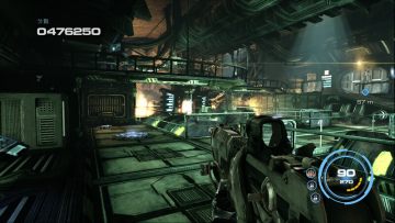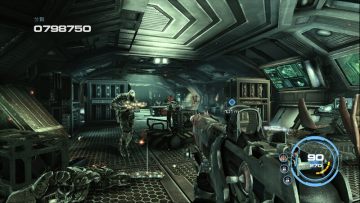 中途会遇到重型外星人枪兵,这种敌人射击手部的枪,他会一直无法开火。算屈死吧,武器最后会掉落下来,300发的格林机关枪。不过这个是重型武器,无法跑动射击。