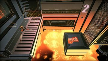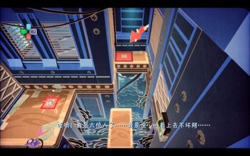 场景9:先跳到对面台子在跳过栏杆压住开关,用超能力抓住下落箱子压下墙上的开关,最后把箱子拉上去压制开关即可。