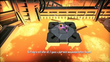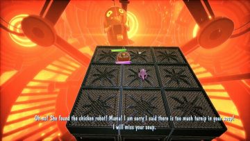 场景12:干掉机器人,注意用炮弹打即可,不要让科学家掉下去摔死,4发即可解决机器人,注意敌人血少以后地板会不停晃动,不要让科学家摔死了。最后用科学家的球干掉粉红小鸡