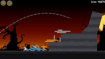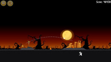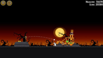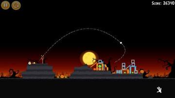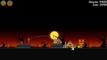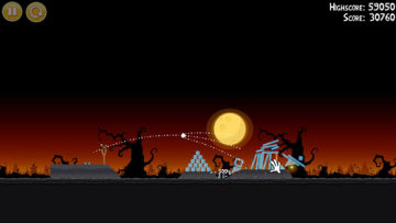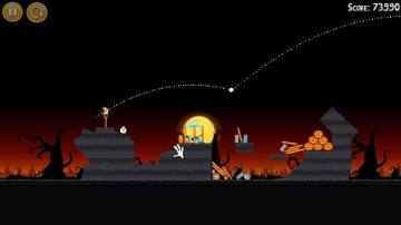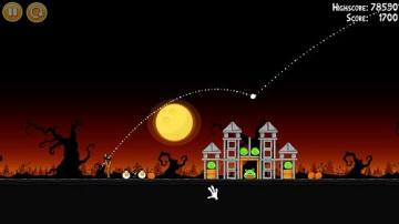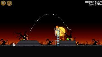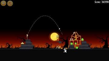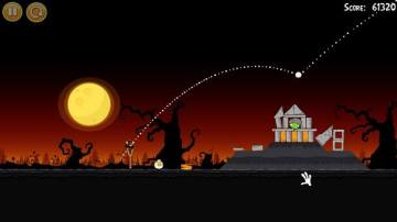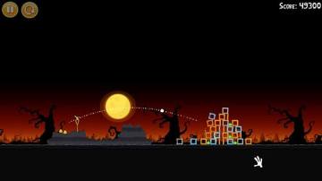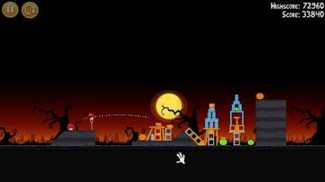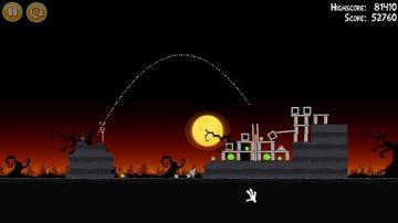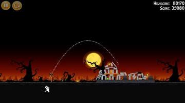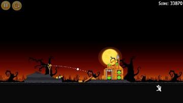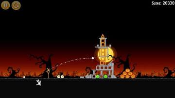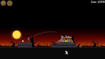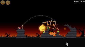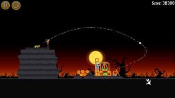 第六关:第一只鸟朝图中轨迹位置,击中左下角,第二只鸟同样以一定角度斜插南瓜位置,(三星绝对拼人品,重复尝试了70多篇啊,苦逼有木有啊)