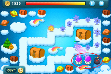 这一关也挺简单 三个炸弹(如下 已圈)道具 先清最左边的那个