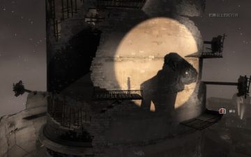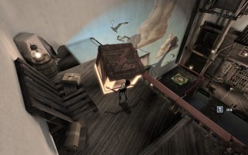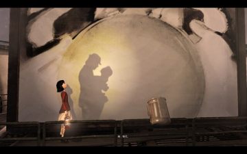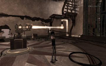 来到宾馆后,先推动垃圾压下来电梯,再按空格键爬到2F,来到2F后先把另一边的电梯升上来,在去尽头控制灯架子的影子来到3F,和2F一样也是先上升电梯,在次利用影子就能直接来到5F了。可惜这里门被锁了,只能从外面上去,利用DIDI父亲和母亲的影子就能轻松上去。