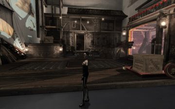 出去后利用跳跃+冲刺就能闪开挡路的阴影,直走就能来到马戏团。迪迪的父亲在和里面的投资人交谈着,看样子似乎是票都卖了但是设施都坏掉了(投资人不愿出钱修理),迪迪爸爸正在为这事头痛不已。下面我们就要来帮助他修理好马戏团的设施。