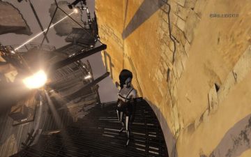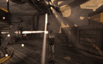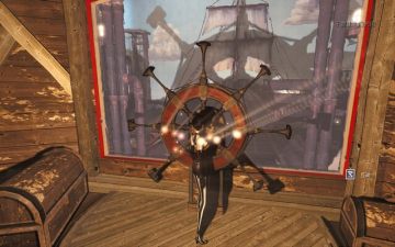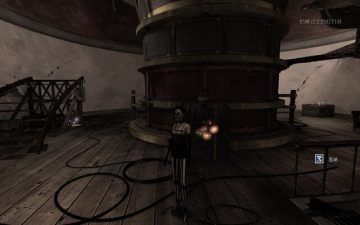 第三个章鱼的眼睛,先去最下层找到炮弹,由于这次的路的阶梯的,我们取得炮弹是无法跳跃的,先利用灯光吧阶梯变成支线放到第二阶梯位置在变回楼梯装这样就能拿到2F,对着章鱼再来一发结果发现还是没效果,这里从控制室楼梯下去即可,发现电闸没合拢,听着迪迪的叫声,她数:3-2-1,最后一声按下E拉动开关即可完成修复海盗船。