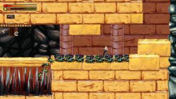 之后会进入一个小山洞,别的不用多虑,主要是有些需要跳跃过去的下面充满针刺的大坑要注意下,只要你掉下去,就直接死了,而不是减血。