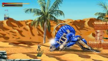 进入游戏后一片黄色沙漠的景色作为背景,我们的主人公Sam(萨姆)出场了(竟然是从天上掉下来的。。难道是外星超人降临原始丛林?终结者时空穿梭?=.=)