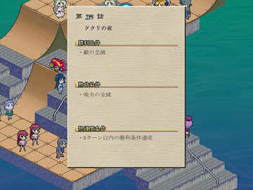 这关的地图蛮有创意,不过二队人马竟然可以串门。。。,不过这话可以说是第4部里很难的一话,虽说可以串门不过还是把二队的实力分的平均点比较好,上方的吸血鬼比较强,而且因为地形的关系有些人会无法攻击到,这点一定要注意,不要白白浪费人力资源
