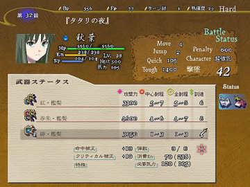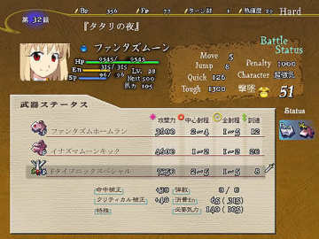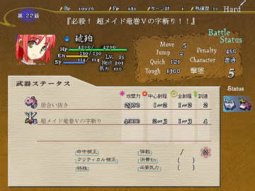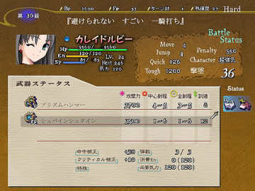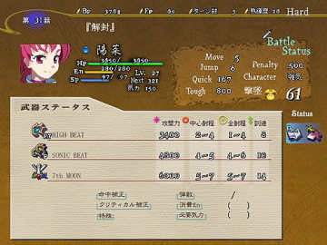 一开始可以让式用2个气合,在2回合内把那个影给打倒,之后发生剧情,眼看影就要袭击阳菜时,突然有人用机枪把影一下子给干掉了,原来是阳菜的专用女仆菜月赶来了,接着阳菜要菜月帮她解开封印,菜月帮助她解开封印后也给她带来了新的武装,解开封印后的阳菜实力大增,这时敌增援出现,用女主角蹂躏敌人吧(菜月有一招让敌人在一回合回避率减半的技能,加上菜月本身有必中,打Assassin时可以用用)