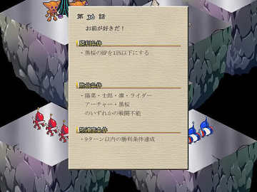 第二回合雪儿会增援,第四回合男主角的部队杀到,RIDER和四季还是老样子,击破任何一人,二人都会一起撤退,二人都没强化部件(小心雪儿没改之前非常差……记得先击破千鬼等减命中的杂兵)