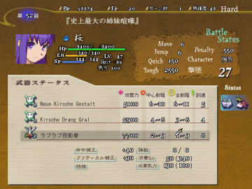 同样也是很难打的一话,首先要击倒真祖这样她就又会帮我们,BOSS会二回行动并且气力在110时有50%几率必中,所以脱力角色必不可少,不过她没有HP回复,慢慢耗也能赢她
