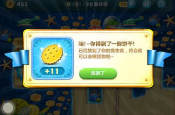 因为目前只收集到66块,所以只能喂怪物宝宝吃这么多饼干,只要点击一下饼干的图标就表示喂它吃了,它还会表示感谢呢