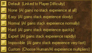| 选择了“部队经验累积”选项后此项才会开启,用于选择电脑部队经验的累积速度。 | |