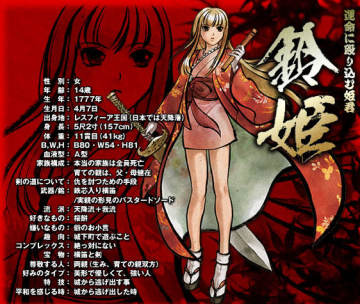 故事梗概: 从猛千代口中获知叔父戈尔巴的消息,于是追索而去。 闪侍的最终BOSS是铃姬的叔父戈尔巴将军,当年篡权杀害了铃姬的父母。而铃姬则在侍卫克洛德的保护下逃亡到日本天降藩,并被藩主抚养长大。