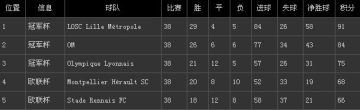 开档里尔,上届法甲冠军,阵容和实力都很强,实力上属于第一集团的队伍。开档成绩,第一年成功卫冕,进攻和防守都是法甲第一。