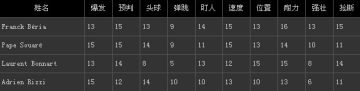 以上只有Florent Balmont的MC属性是高亮,其它都浅绿色,没办法都是DM出身的打手。其中Kévin Anin是3.5M转入的,也是唯一能提供高球保护的中场中。