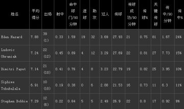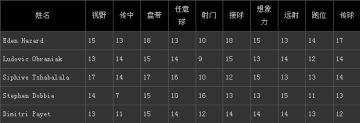 首先Eden Hazard真的很好用,从数值上看Siphiwe Tshabalala也应该有一个出彩的赛季,可惜很容易受伤,状态不能保持。在这条攻击前卫线中,基本数值都很平均,除了射门比较差,其他都有13至15的数值,那么赛季数据如何呢?
