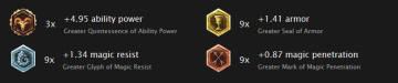 标准AP中单符文,如果与你对线的英雄也是AP中单,也许你可以把黄色固定护甲换成成长生命上限,因为你可以在远距离用