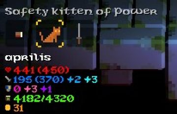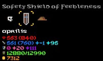 突然想起来 补充一个武器 看起来是个盾牌 攻击是一个很短的前冲 属性你也看到了 -1攻击 +20防御(我不认英文,所以不看前缀)