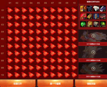 6、点击“全部打开”按钮,可一次开启100个福袋。只有当前没有被打开的福袋时才可使用全部打开功能,每次全部打开时,一次性扣除1000积分。